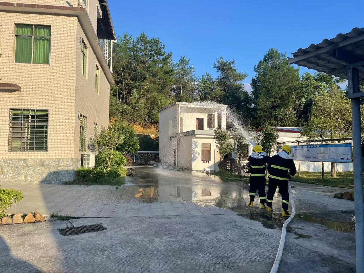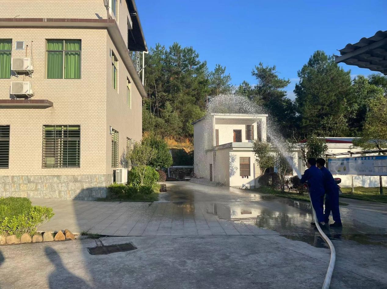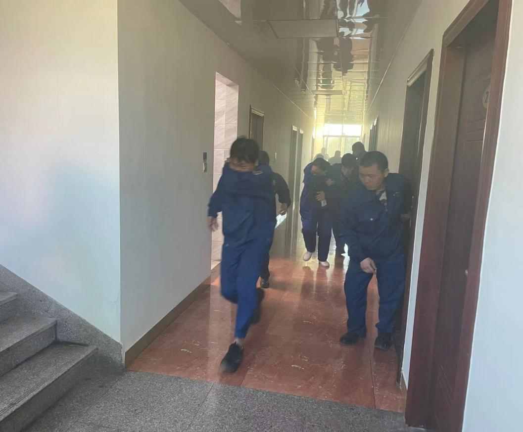 模擬員工宿舍突然起火,火勢發(fā)展迅猛并產(chǎn)生大量濃煙,通知每間宿舍內(nèi)人員進(jìn)行撤離至廠區(qū)大門口安全地點,人員撤離時應(yīng)低頭彎腰、手捂住口鼻有序進(jìn)行撤離。待所有人員撤離至安全地點時,清點人員。上報公司并撥打119進(jìn)行報警。